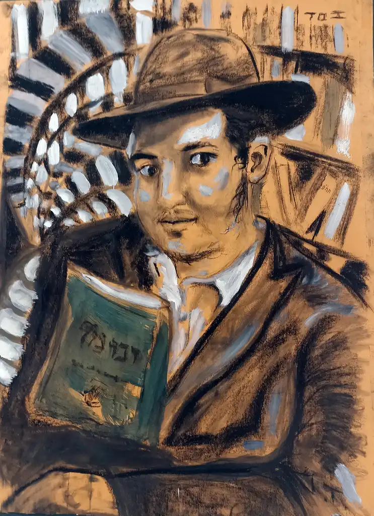 Давид — не просто сторонній спостерігач. Його зв’язок з єврейським світом — глибокий і духовний. У минулому він був учнем однієї з єшив Дніпра, де осягав мудрість наших предків. Саме цей досвід заклав фундамент його творчості: Давид малює не просто людей, він малює єврейські душі.